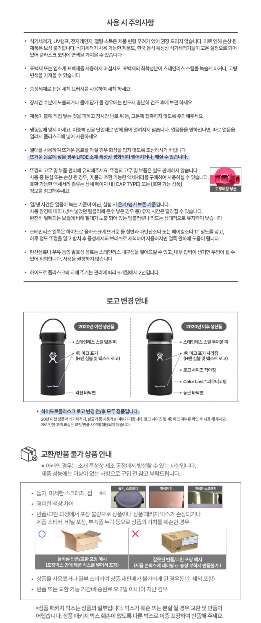 - 하이드로 플라스크 로고가 없는 반대쪽 면에만 각인이 가능합니다.