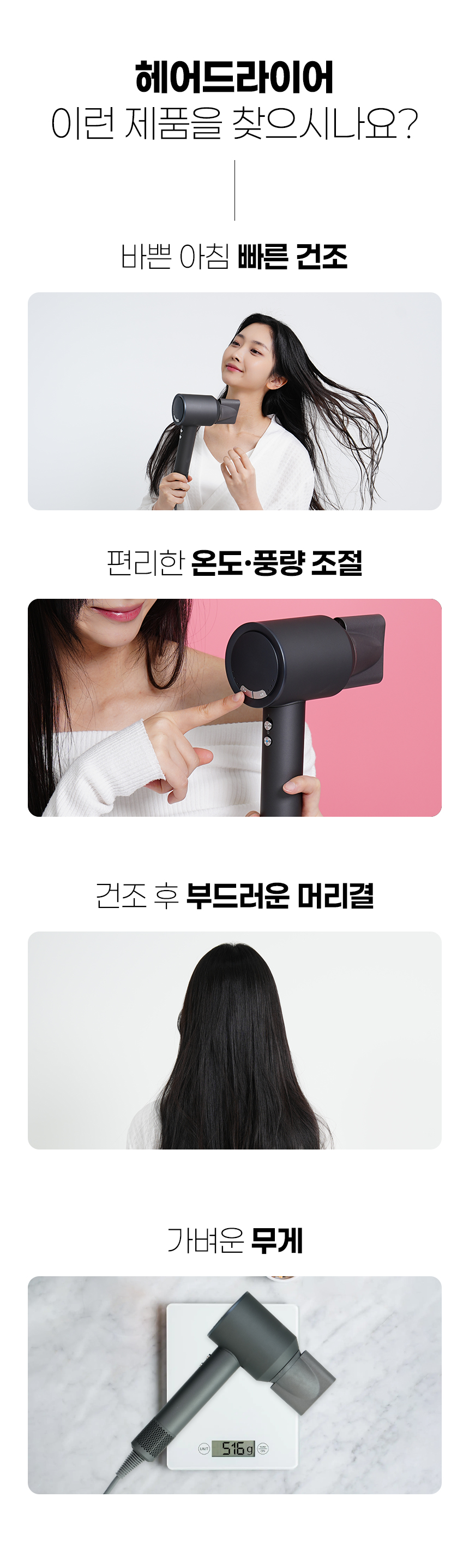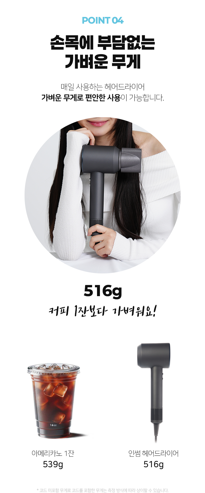 약 516g (본품) 258x100x80(mm) 전원코드 1.8m 220-240V~, 50-60Hz / 1600W