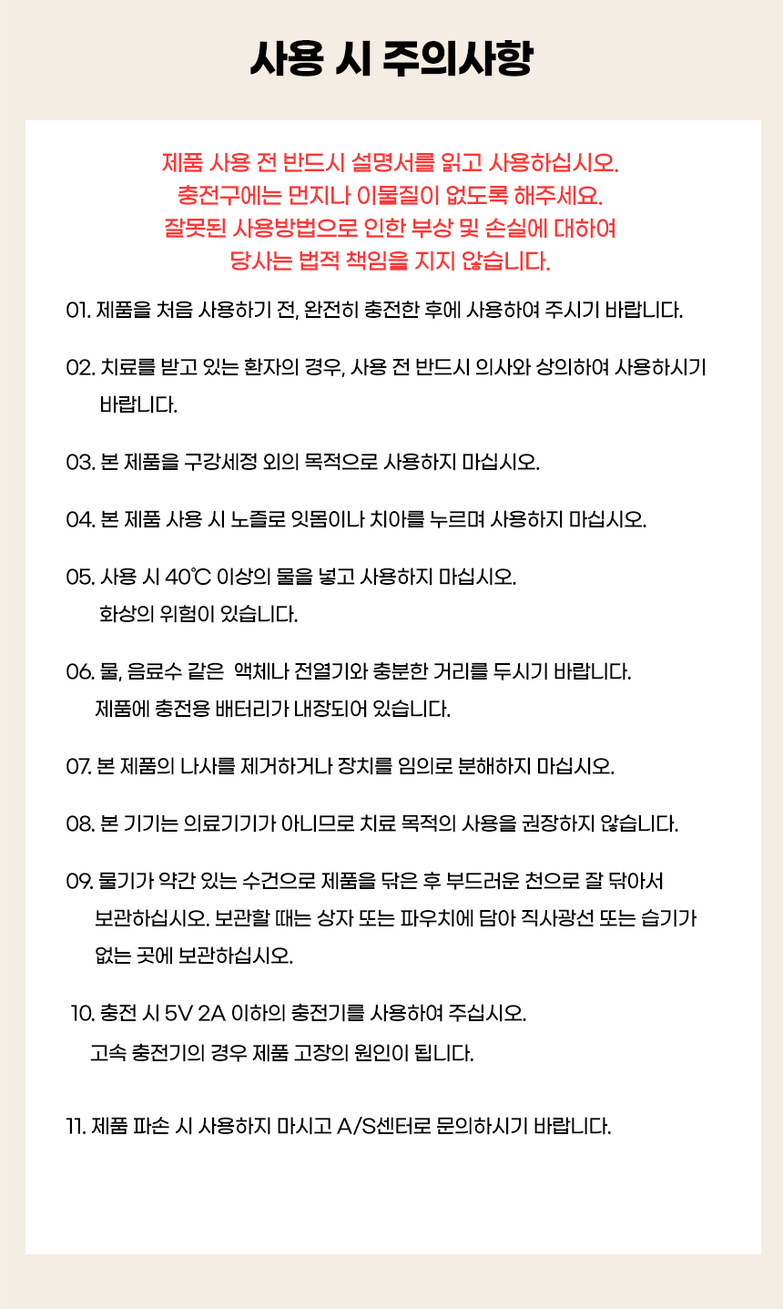 본품, 4종 노즐, 충전 케이블, 사용 설명서