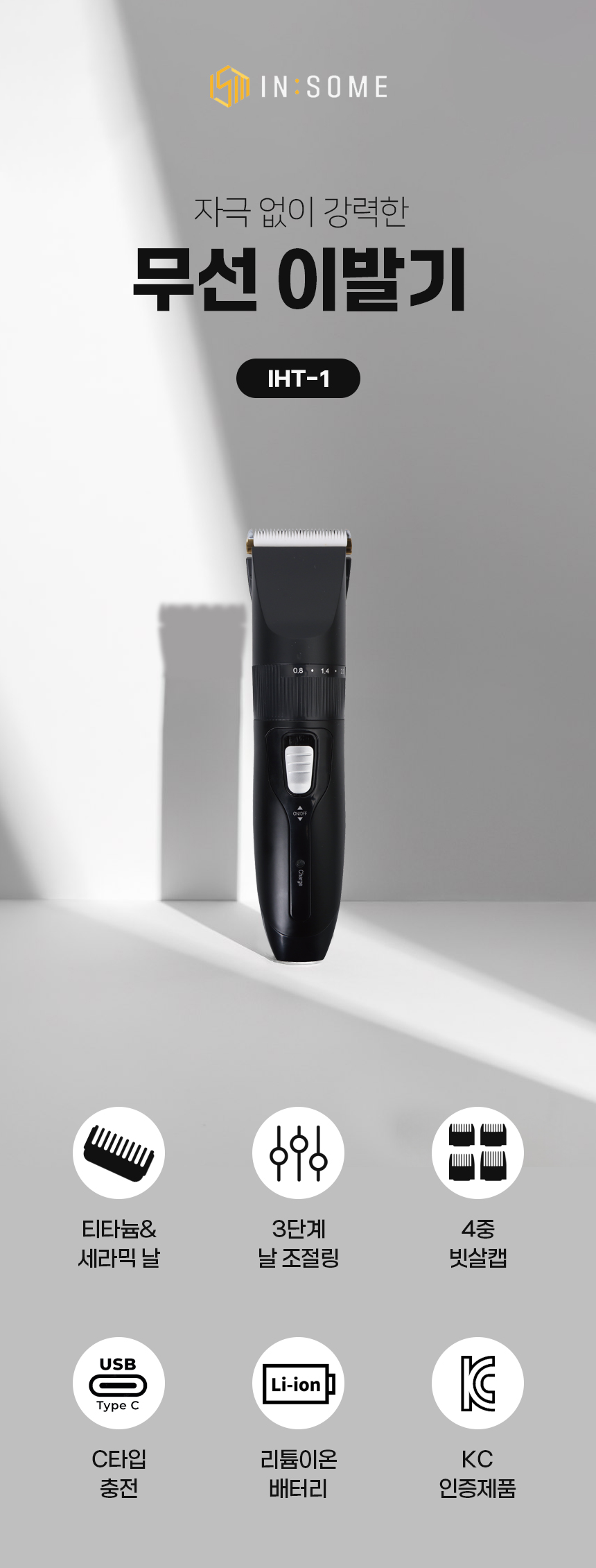 본품, 4종 빗살캡, 청소솔, 오일, 충전케이블, 사용설명서