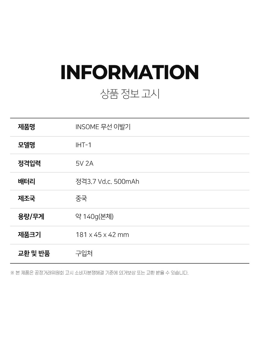 약 140g(본체) 181 x 45 x 42 mm 5V 2A