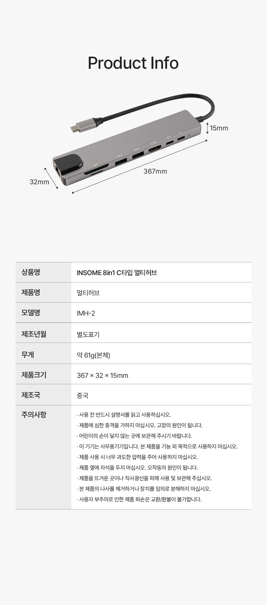 약 61g (본체) 367 x 32 x 15 (mm) 해당 없음