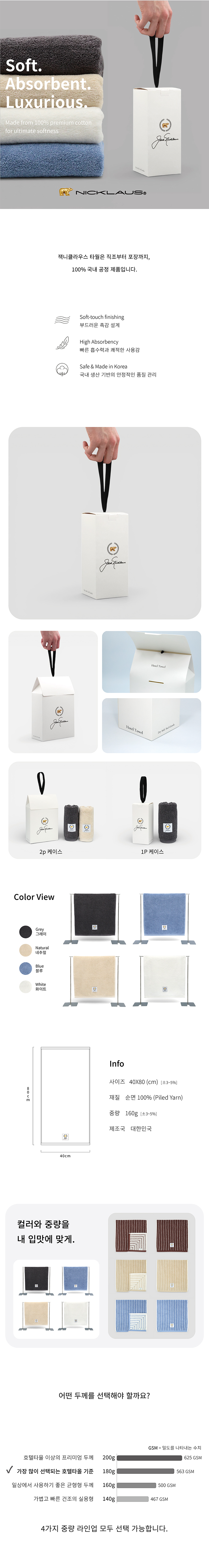 잭니클라우스 호텔수건 160g + 종이케이스 포함