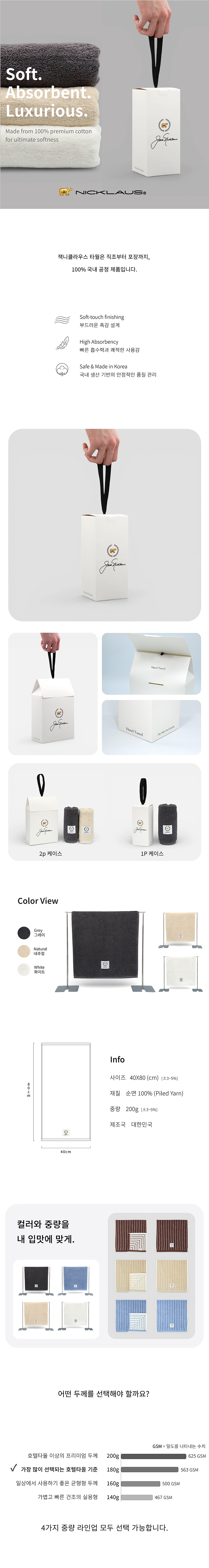 잭니클라우스 프리미엄 호텔수건 200g 1P + 종이케이스