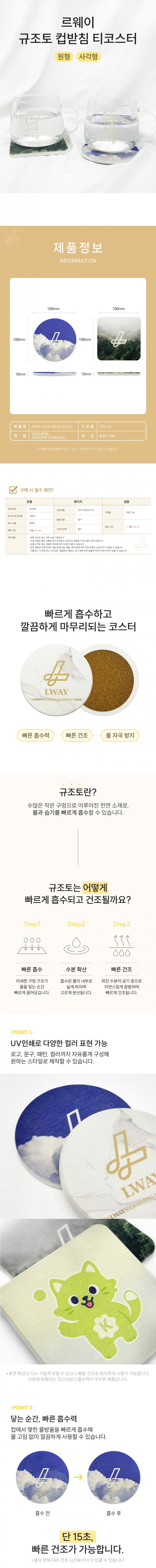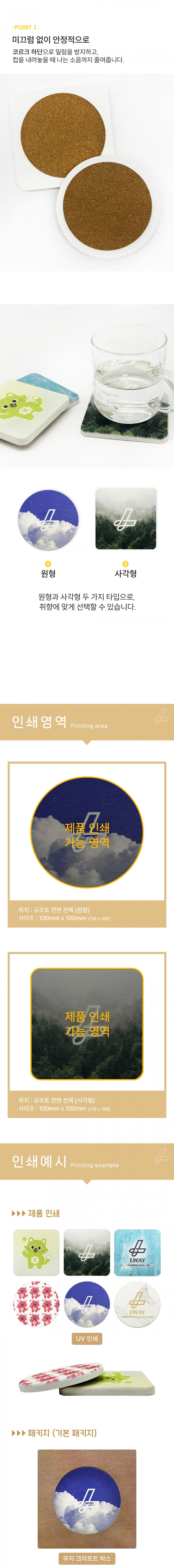 사이즈 - 100x100mm, / 재질 - 규조토(본품), 코르크(하부 미끄럼 방지)