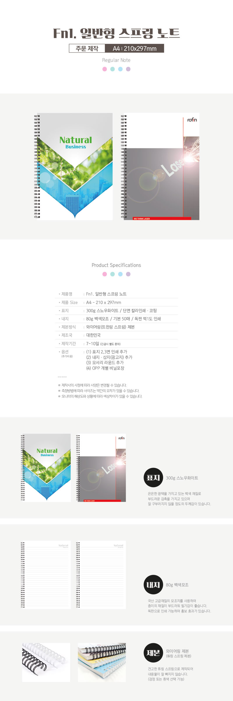 (1) 사이즈 : 210*297mm(좌철)