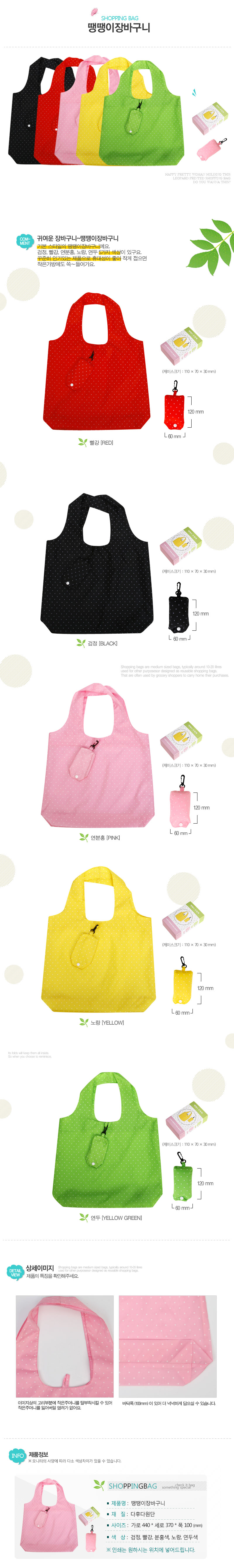 땡땡이장바구니1 / 분홍(품절), 빨강, 노랑, 연두, 검정