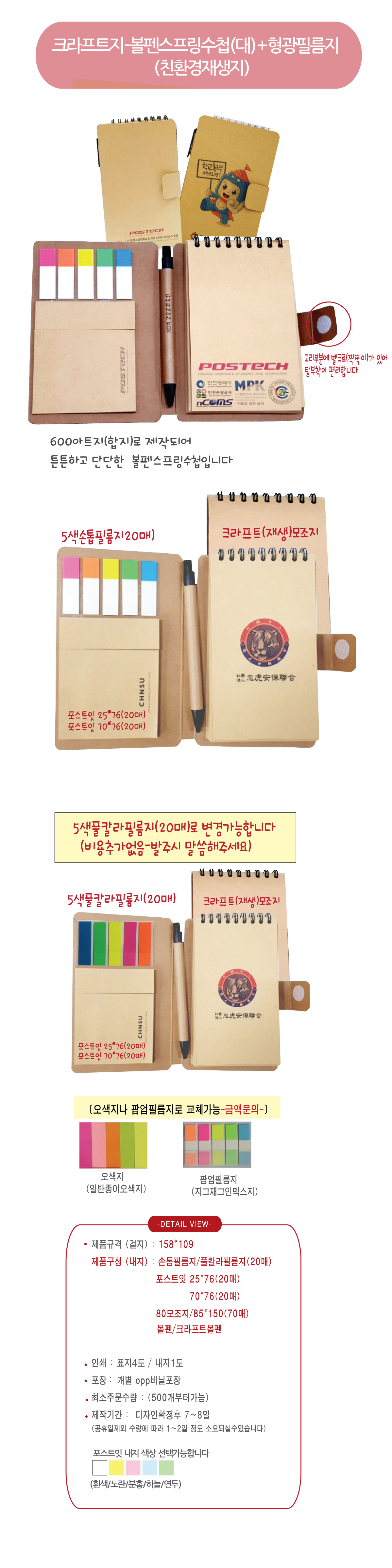 필름지+포스트잇2종+볼펜+스프링수첩메모지 / 필름지+포스트잇+메모지+볼펜